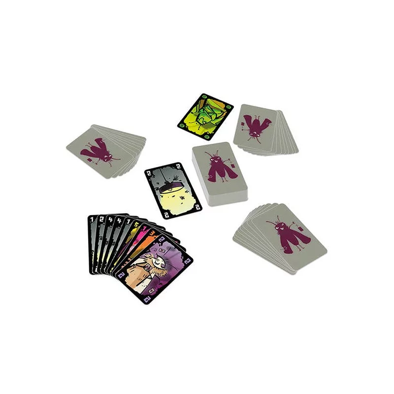 Dans ce jeu de cartes tous les joueurs ont le droit de tricher sauf 1 : la gardienne punaise. En effet il faut tricher mais ne surtout pas se faire prendre par la gardienne punaise car si un joueur se fait prendre il devient à son tour la gardienne punaise et n’a plus le droit de tricher. Chaque joueur reçoit 8 cartes et lorsque la gardienne a fini de distribuer le bluff peut débuter. La punaise commence et pose une carte sur la pile de la défausse, la valeur de la carte doit être supérieur ou inférieure de 1 à la carte visible sur la défausse. Lorsqu’un joueur ne peut pas jouer il pioche. Certaines cartes spéciales sont dissimulées parmi les autres, telle que la carte Mito dont on doit absolument se débarrasser en trichant. Attention la triche reste réglementée, en effet la main de cartes doit toujours rester au-dessus de la table, il est interdit de faire disparaître plusieurs cartes à la fois, si un joueur se fait prendre, plus personne ne peut tricher avant que la vérification soit terminée et il est interdit de faire disparaître sa dernière carte.