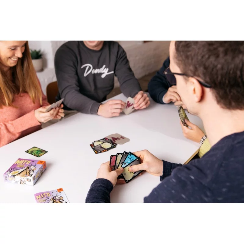 Pour se débarrasser au plus vite de ses cartes, tous les moyens sont bons, même… la triche ! Chacun son tour prend le rôle de la Gardienne Punaise qui veille au grain en surveillant les autres. Serez-vous honnête en respectant les règles ou allez-vous tricher ? Mettre une carte dans sa manche, en faire tomber sur ses genoux, tout est possible… à condition de ne pas se faire prendre ! Attention toutefois à rester attentif au jeu, car des cartes spéciales viennent régulièrement bousculer la partie. Mito est un jeu «mitique» et complètement dingo.