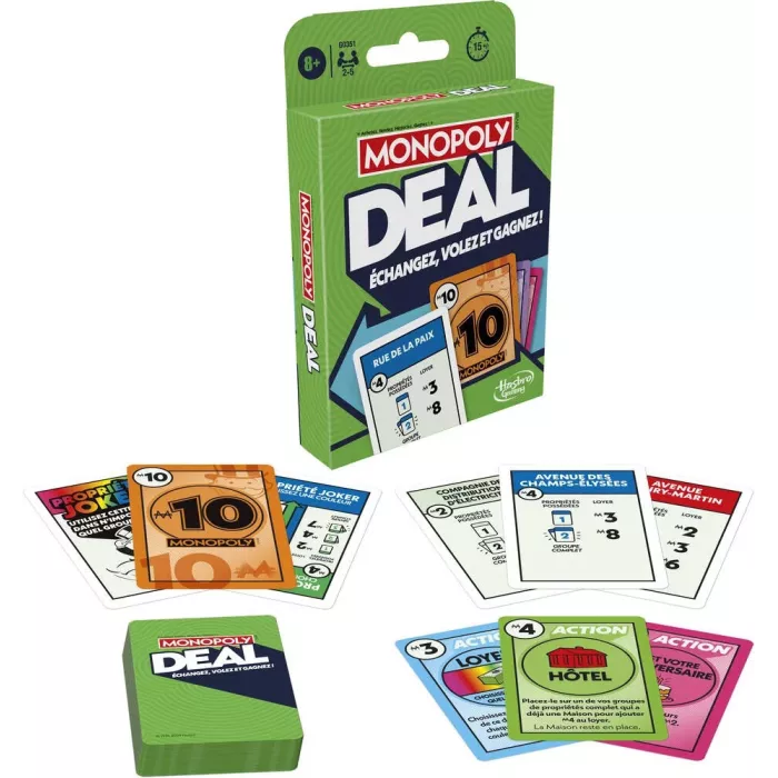 Monopoly Deal est un jeu de cartes rapide et très simple qui reprend le concept du célèbre jeu de société Monopoly.